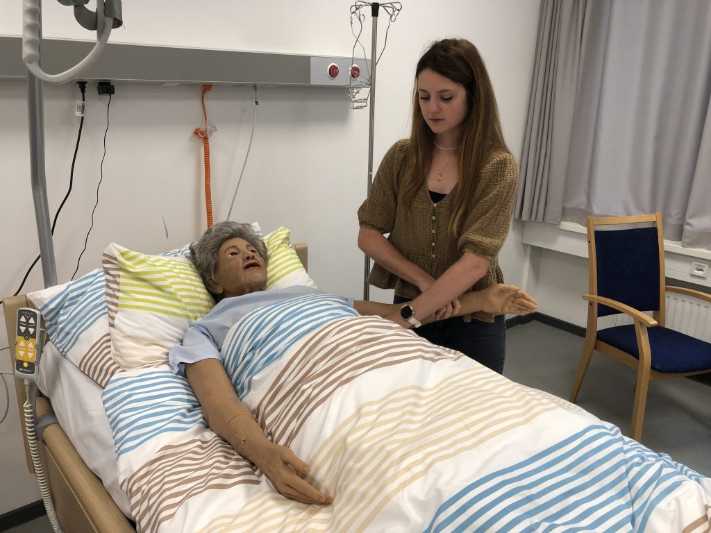 Gefördert über Mittel aus dem Masterplan Digitalisierung verfügt die Schule nun über smarte und robotische Systeme zur Unterstützung der Kommunikation, der Mobilität, der Nahrungsaufnahme und weiterer Bereiche der gesellschaftlichen Teilhabe. Das Herzstück des IuZ Pflege bildet sicherlich das sogenannte SimLab, in dem unter realistischen Bedingungen Situationen einer medizinischen und pflegerischen Versorgung simuliert, audiovisuell aufgezeichnet und anschließend ausgewertet werden können.